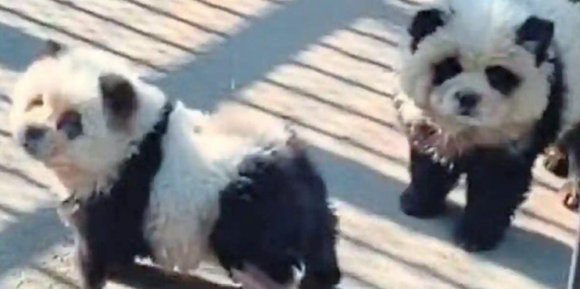 El Zoológico de Taizhou, en la provincia de Jiangsu, China, se metió en serios problemas tras presentar a dos perros de la raza chow chow teñidos de blanco y negro para que parecieran pandas.