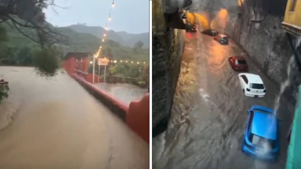 Las fuertes lluvias registradas este lunes en Guanajuato capital provocaron el desbordamiento de la presa de San Renovato, causando inundaciones en varias calles del centro histórico, incluido el Jardín Unión y la calle Subterránea, de acuerdo con autoridades municipales. El…